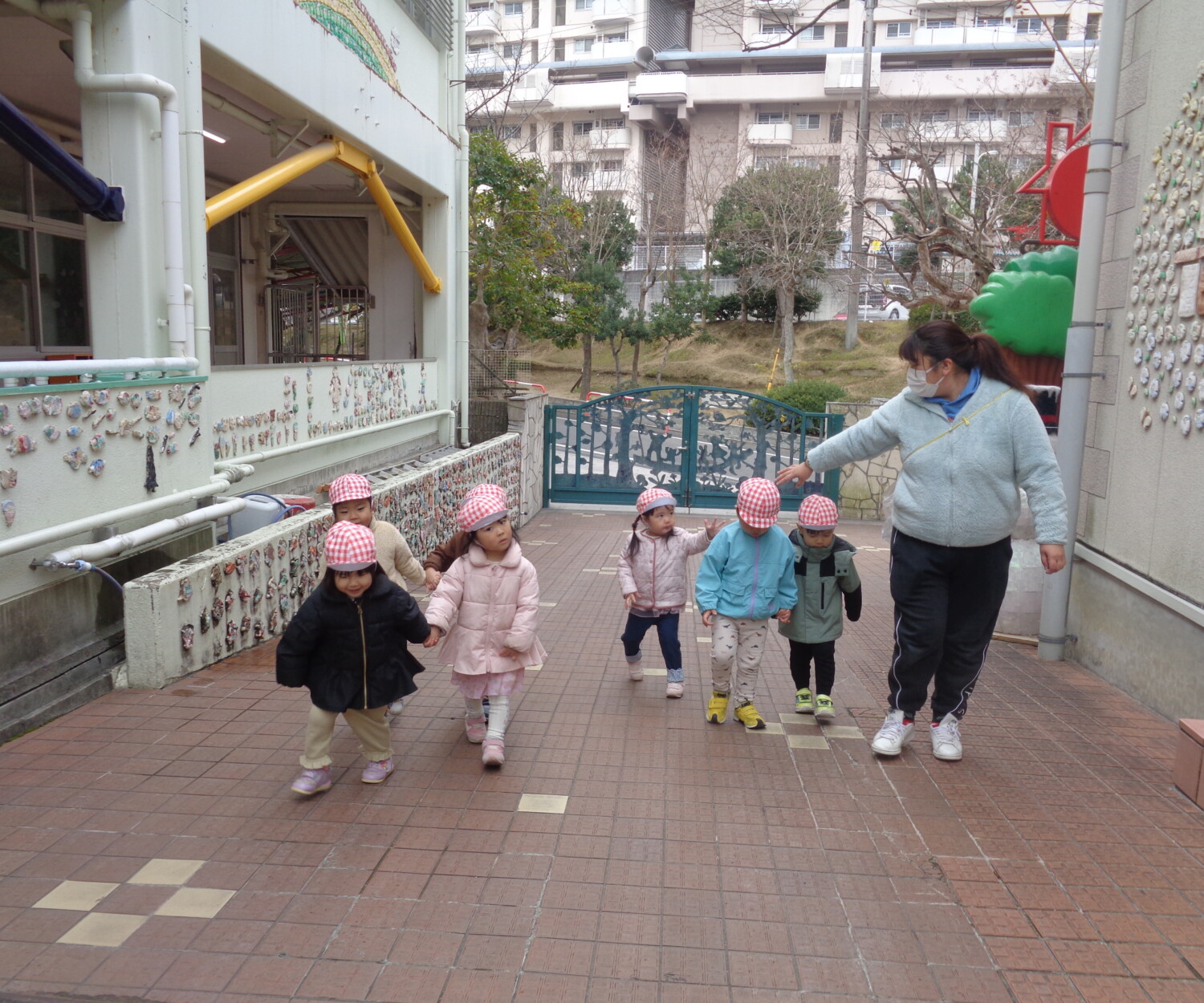 美木多チコスブログ 11 12月 2024 鴨谷公園までお散歩♪(つきぐみ) 鴨谷公園まで歩くことができるようになったつきぐみさんです。今日もしっかりとした足取りで歩いていきました。鳥がたくさんいて「おーい!!」と呼んだりかけっこしたり、おもいっきり楽しみましたよ。 美木多 幼稚園
