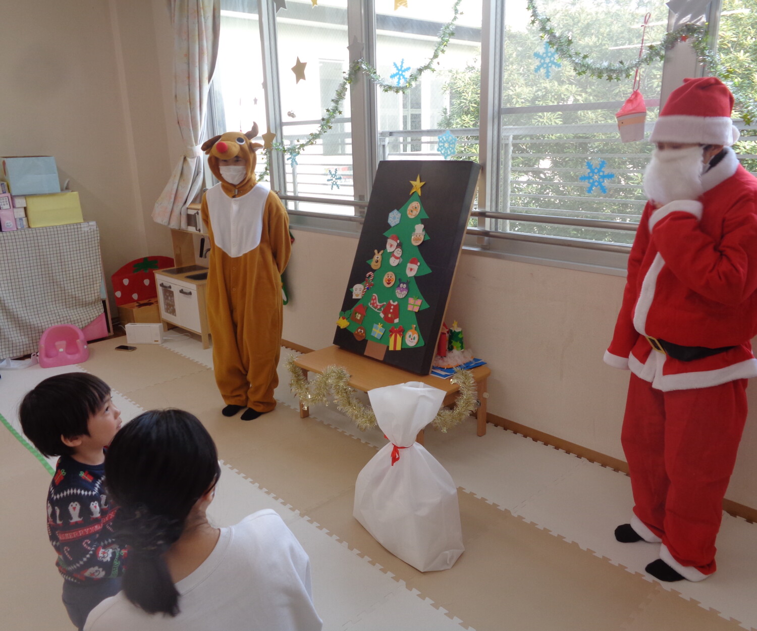 美木多チコスブログ 20 12月 2024 クリスマス会 一足早いクリスマス会を行いました。トナカイさんやサンタさんもきてくれて、楽しいひと時を過ごしました。そら組のお友だちがサンタさんに質問をしました。なんとサンタさんはフィンランドという北の寒い国からやってきてお年はなんと500歳だそうです。いつまでも元気でいてほしいですね。 美木多 幼稚園