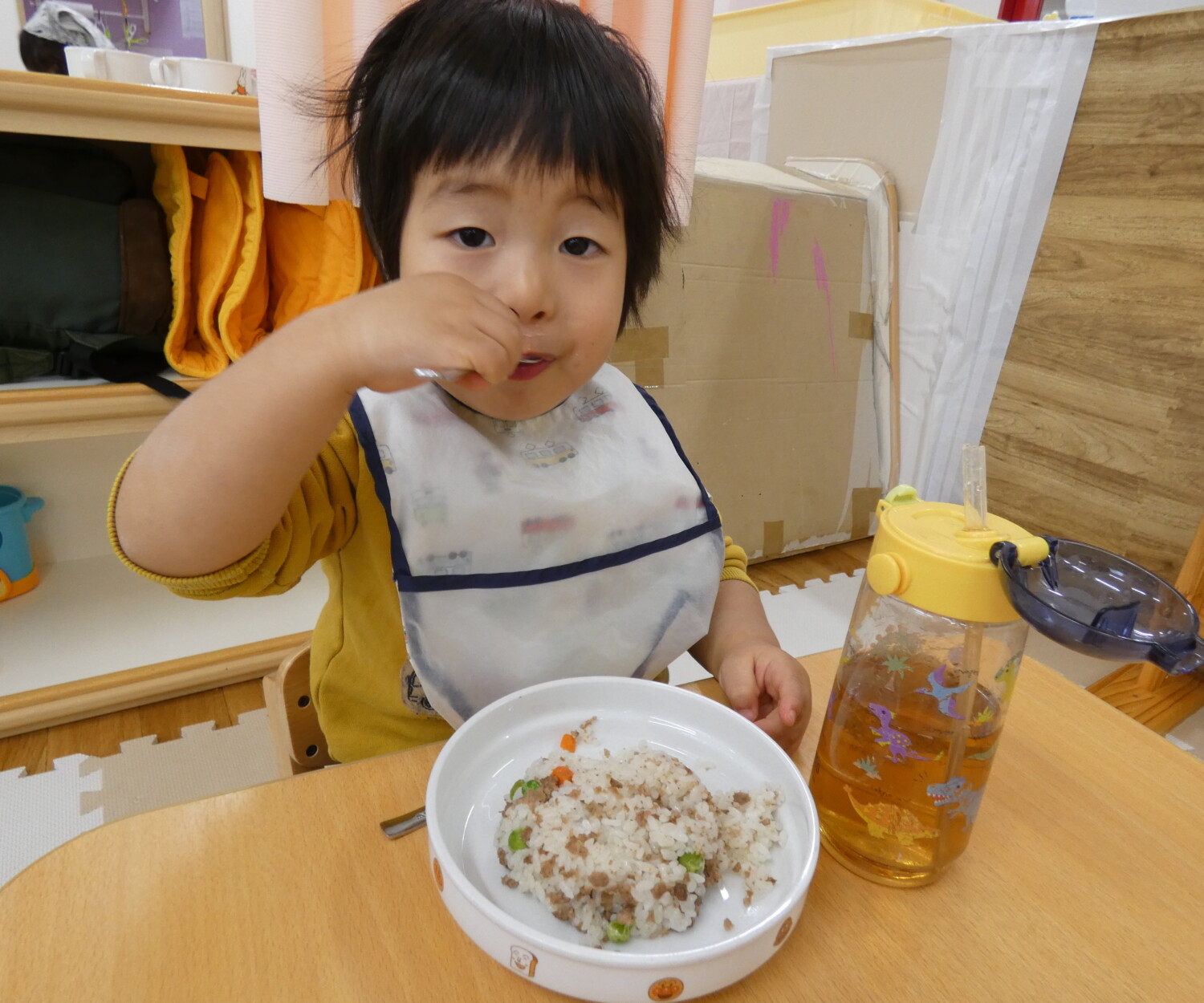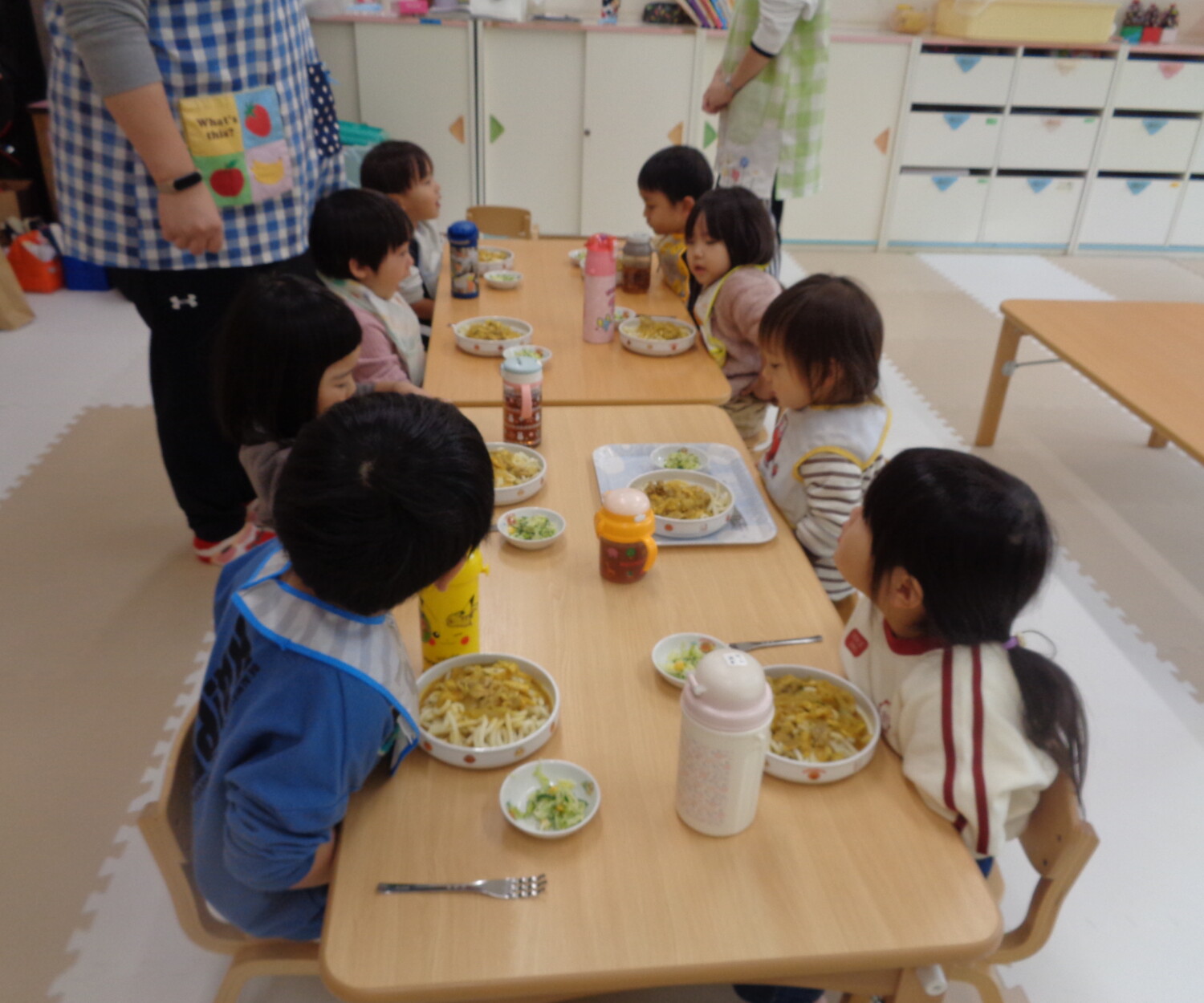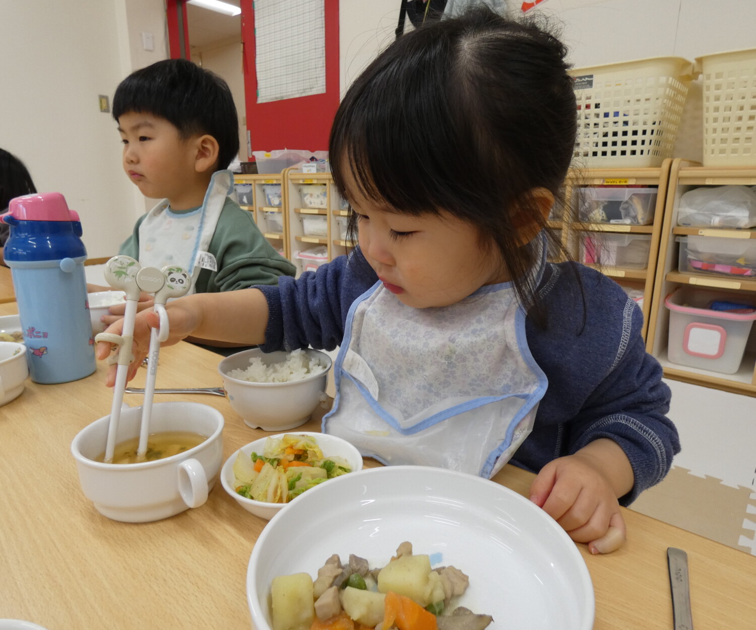 美木多チコスブログ 10 12月 2024 おいしい給食(そら組) 英語活動が終わった後は美味しい給食です。今日の主菜は「鶏肉とジャガイモの南蛮煮」です。上手に食べられるようになっています。 美木多 幼稚園