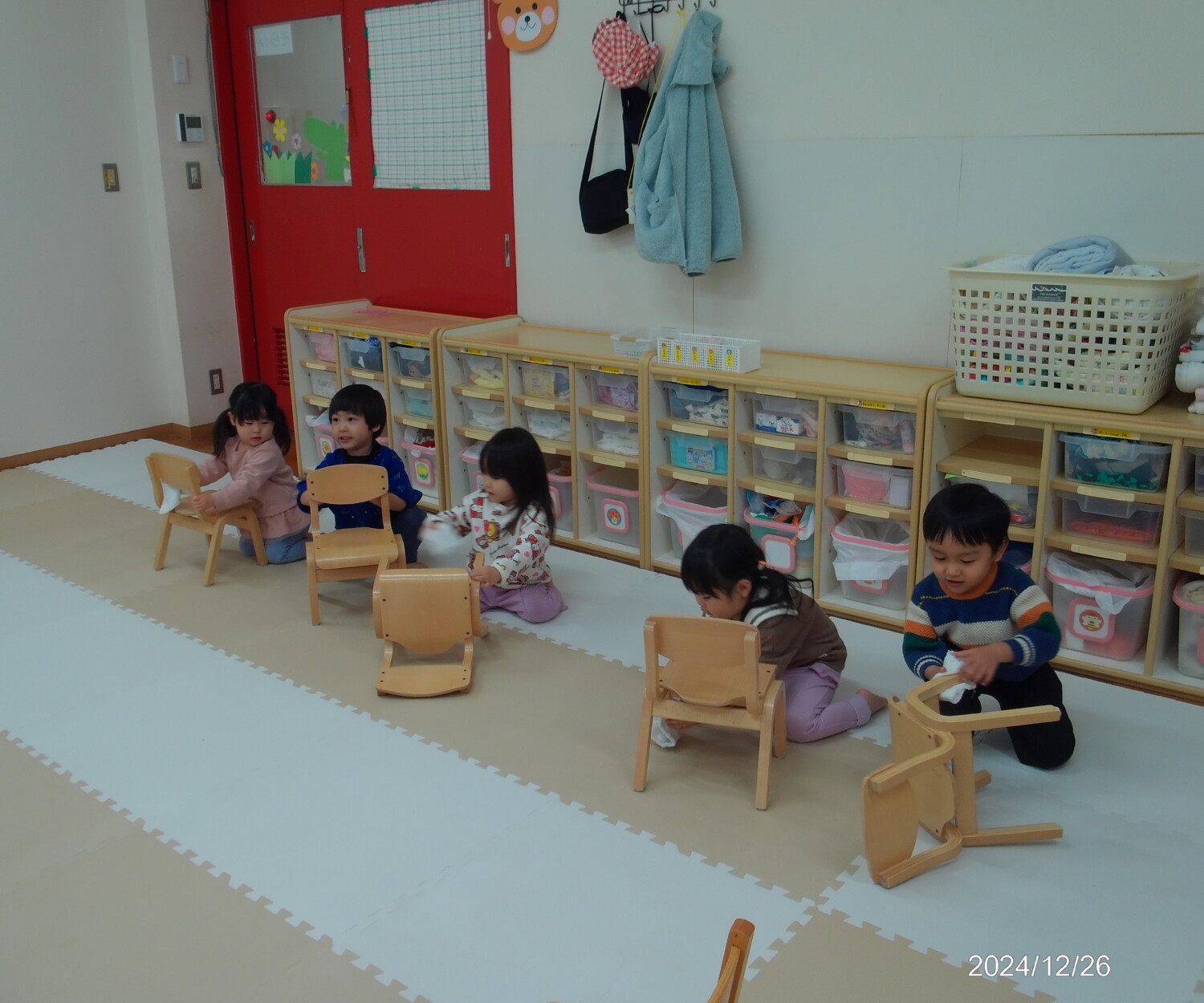 美木多チコスブログ 26 12月 2024 大掃除(そら組) 明日はお弁当日、あさっては土曜お預かりの日となり、年内の通常保育は今日が最終日です。みんなで大掃除をした今日のそら組さんです。 美木多 幼稚園