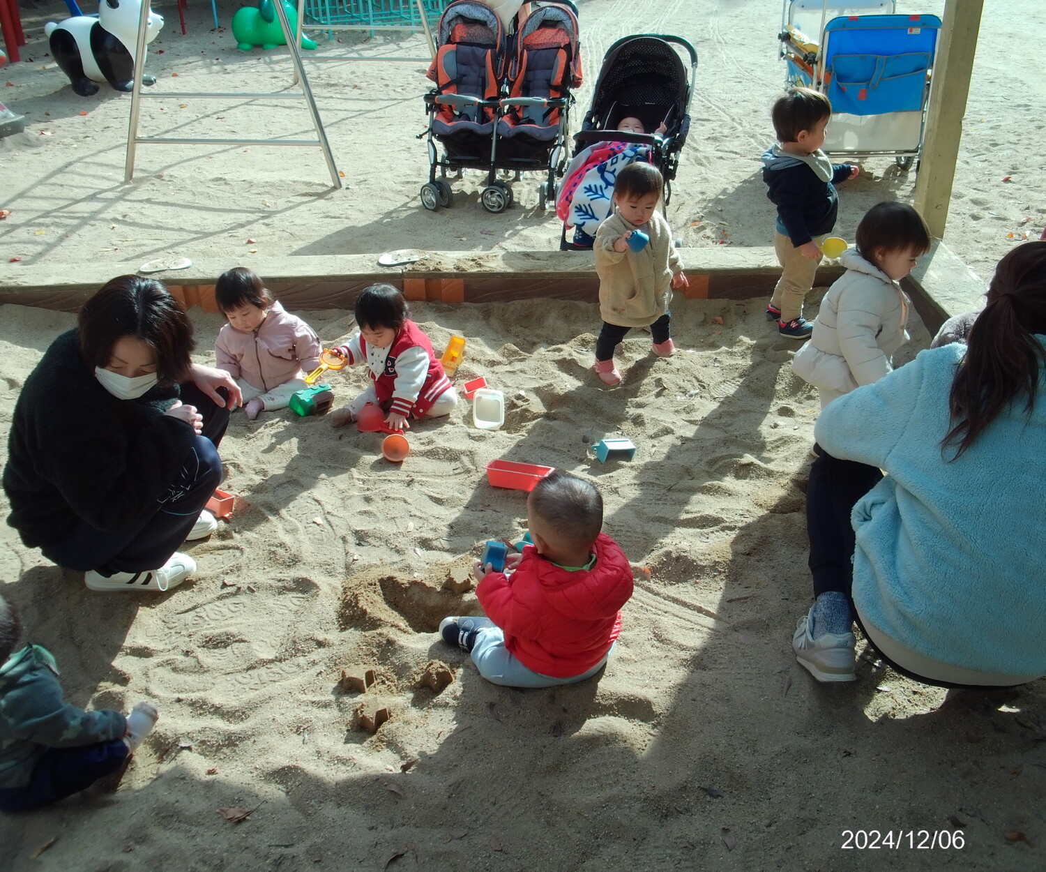 美木多チコスブログ 06 12月 2024 お砂場大好き(ほし組) お砂場遊びが大好きなほし組さん。今日もお砂だらけになりながらいっぱい遊びました。高月齢のお友だちはシール貼りも頑張りましたよ。 美木多 幼稚園