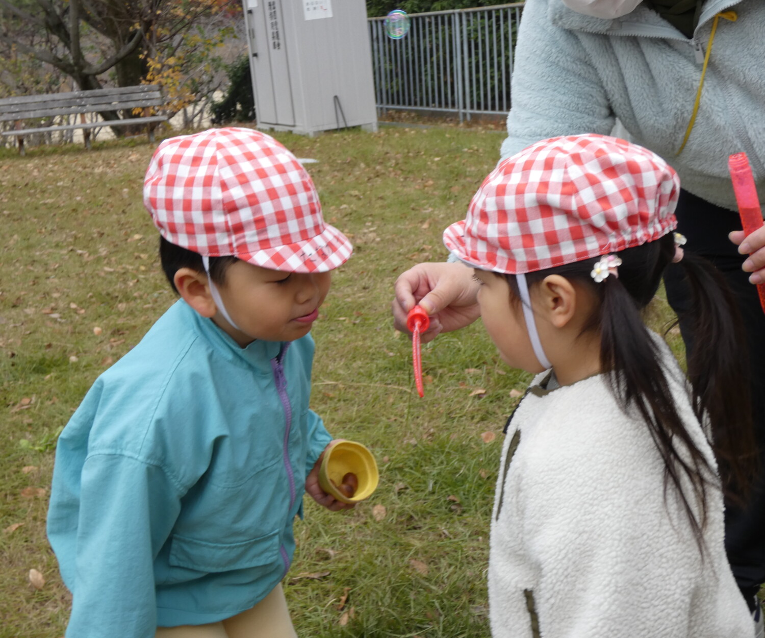 美木多チコスブログ 13 12月 2024 鴨谷公園へ(ほしぐみ) 鴨谷公園へ行きました。 順番に先生と手をつないで歩けるお友だちも出てきましたよ。 歩けるととっても嬉しそう! 落ち葉のじゅうたんに大喜びでした!! 美木多 幼稚園