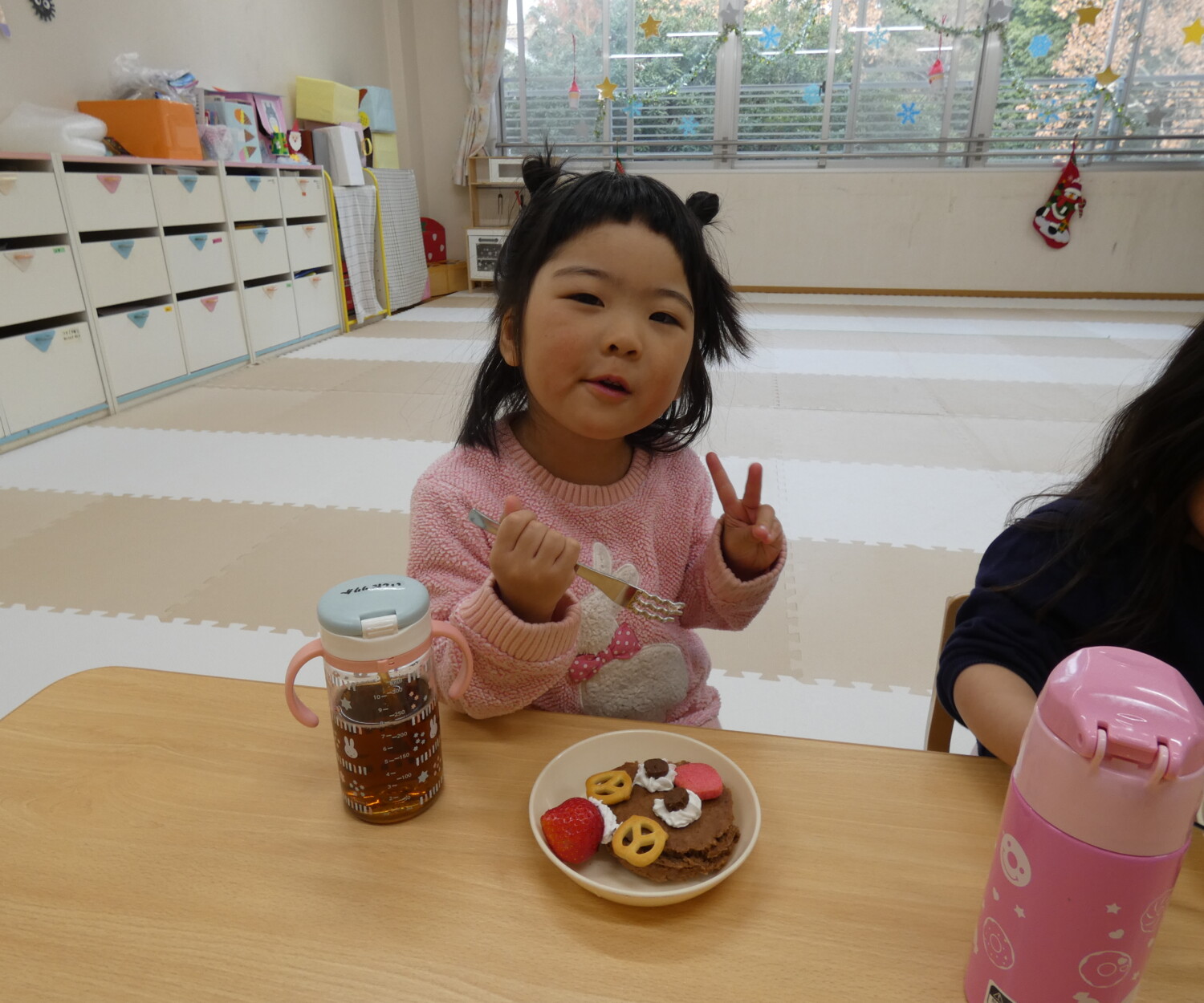 今日の幼稚園 保護中: 家族登園 クリスマスケーキ作り 今日は、家族登園を行いました。 Bec Sucreのオーナシェフの福田さんに来園していだたき、ケーキの作り方を教えていただきました。 シェフのホイップに興味津々で真剣なまなざしです。 子どもたちも飾り付けを上手にして楽しんでいました。 寒い中、参加ありがとうございました。 美木多 幼稚園